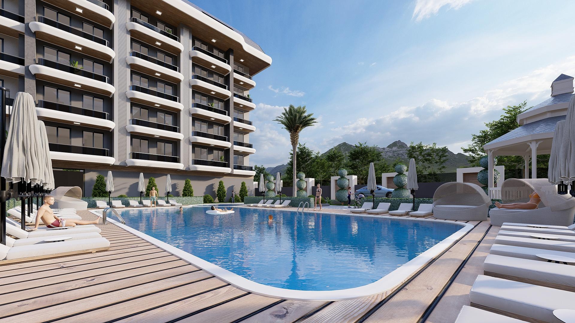 Magnifika lägenheter till låga priser i Kargicak, ett mycket eftertraktat område 15 km öster om Alanya. Kargicak håller på att bli ett populärt område att bo i på grund av dess fantastiska natur. Detta nya projekt ligger mellan det fantastiska havet och den härliga utsikten över Taurusbergen. Kargicak är något tystare än dess närliggande städer Alanya och Mahmutlar. Infrastrukturen utvecklas fortfarande, men det finns ett brett utbud av butiker, barer och restauranger. Transportförbindelserna är utmärkta, med huvudvägen D400 som förbinder alla de största städerna längs denna kustlinje. Båda flygplatserna är mycket lättillgängliga, med taxi, bussar och transfertjänster lätt tillgängliga. Denna kustlinje är känd för sina vackra stränder och fantastiska turkosa hav. Många vattensportstationer finns utspridda längs kusten och erbjuder vattenskoter, parasailing och vattenskidor.