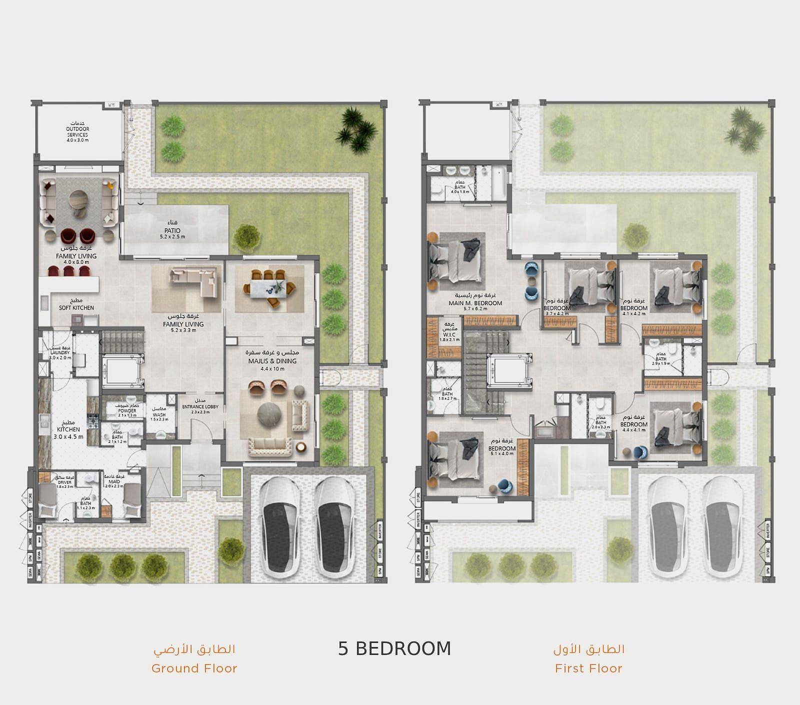 Gemenskapen med blandad användning har totalt 1 250 fastigheter. Radhusen/villorna med 3, 4 och 5 sovrum finns tillgängliga i en rad olika layouter och vyer. De är inbäddade i en miljö som är avsedd att förbättra livskvaliteten för invånarna utan att äventyra framtida generationers krav, samt att skapa inspirerande möjligheter att minska samhällets koldioxidavtryck. Varje villa kommer med ett bilgarage och gatuparkering för gäster och har sin egen dadelproduktion och trädgårdsutrymme, samt fristående tomter och zoner för gemensamt jordbruk. Invånarna har tillgång till en mängd olika bekvämligheter, inklusive inomhus- och utomhusgymnastiksalar, cykel- och joggingspår, parker, lekplatser, simbassänger, en moské och bönerum och mycket mer.