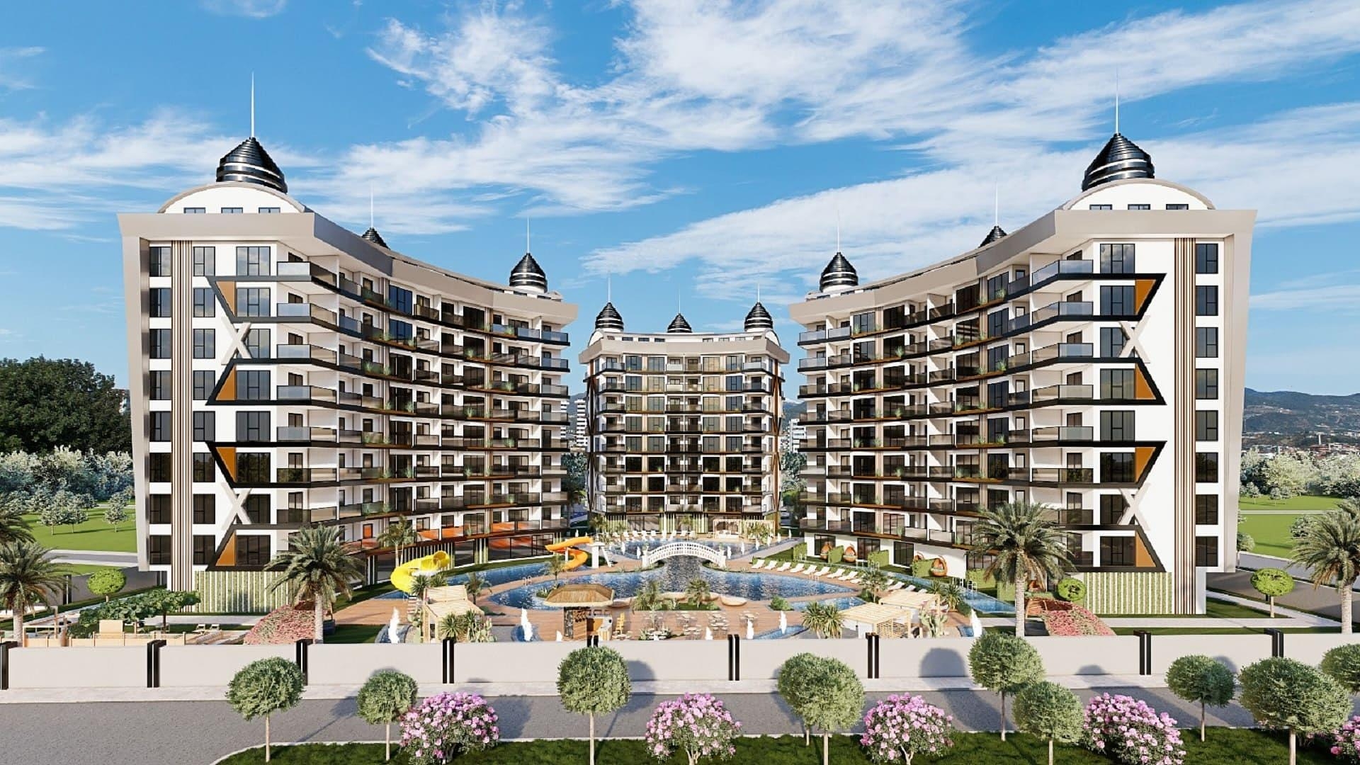 Detta spännande projekt ligger på 8760 m² mark med 148 lägenheter fördelade på tre kvarter. Komplexet är placerat på något högre mark, vilket innebär att det finns fantastisk havsutsikt från första våningen och upp. Det finns en rad konfigurationer att välja mellan, från söta 1+1:or till rymliga 2+1:or, perfekta för fritidshus eller som en investeringsmöjlighet för hyresmarknaden.