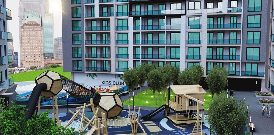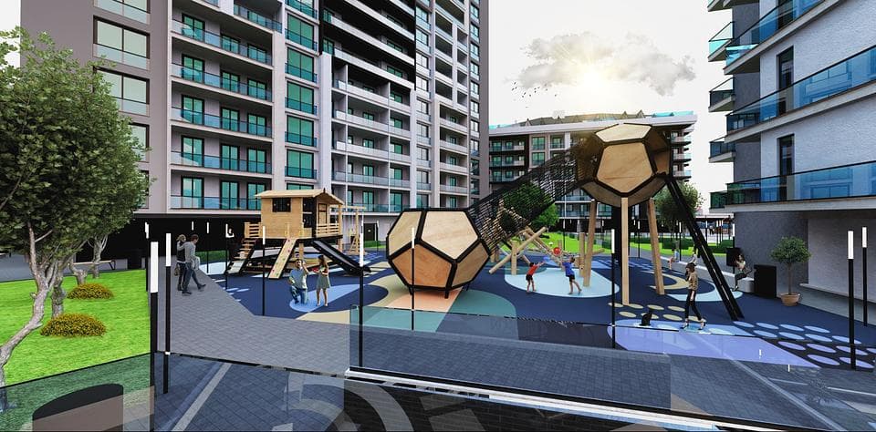 Egendomen är också utrustad med en fotbolls- och basketplan, en lekplats för barn och naturgasinfrastruktur. Det ligger bekvämt bara 0,5 km från stadens centrum, 7,8 km från stranden, 15 km från flygplatsen och 0,5 km från köpcentrum. Dessutom gör alternativet för delbetalningar att köpa ditt drömhem mer tillgängligt.