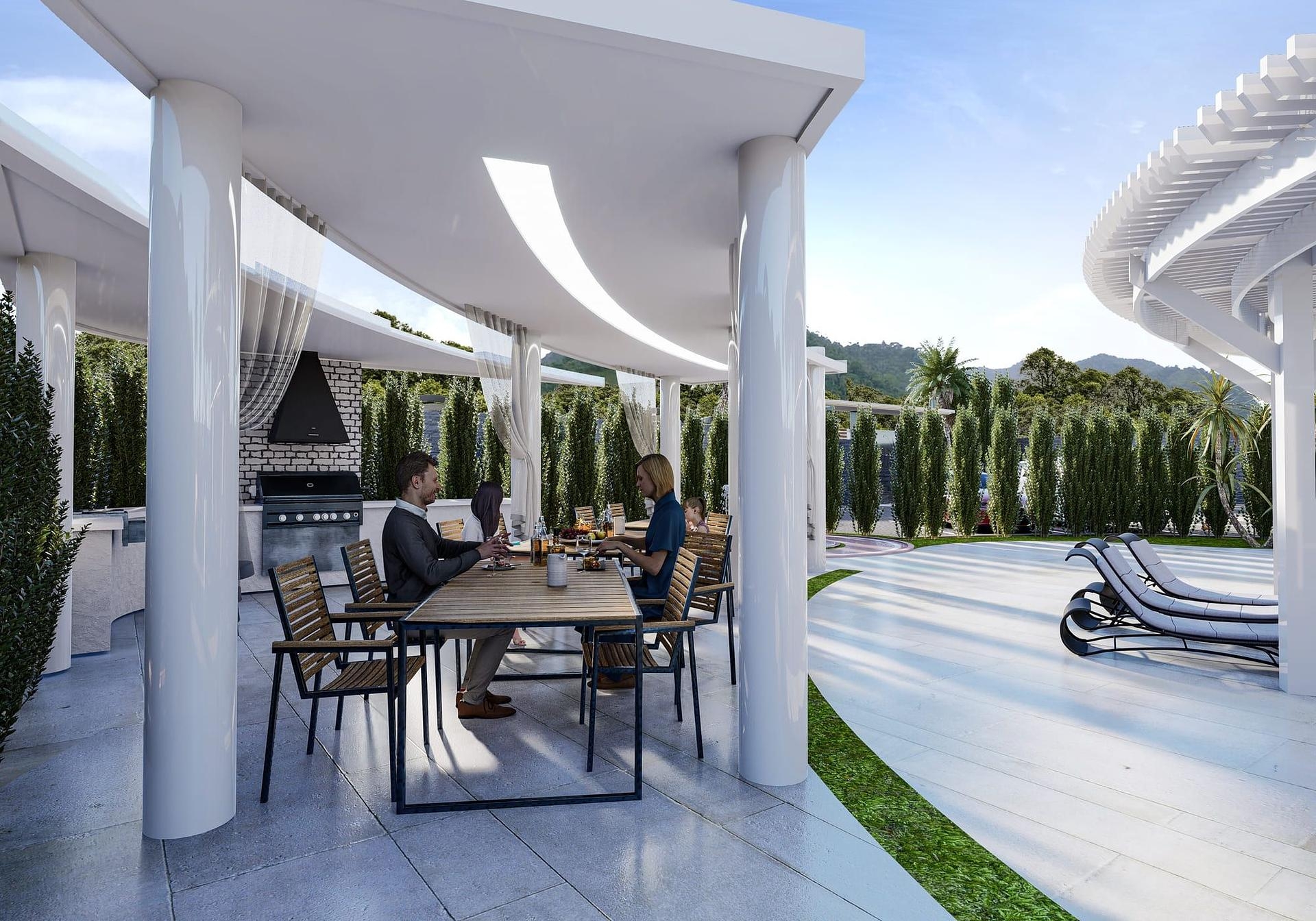 Dış alan spiral konsepti yansıtacak şekilde tasarlanmış ve çok uyumlu bir his veriyor. Şezlongunuz için teraslarla çevrili çarpıcı bir spiral yüzme havuzu bulunmaktadır. Buradaki tesisler mükemmel, rahatlamaya ve gençleşmeye yönelikken, çocukların eğlence alanları onları eğlendirmek için etkinliklerle dolup taşıyor. Bu harika proje, gelecekte turistlerin gözdesi olacak bir alana yatırım yapmak için mükemmel bir fırsat.