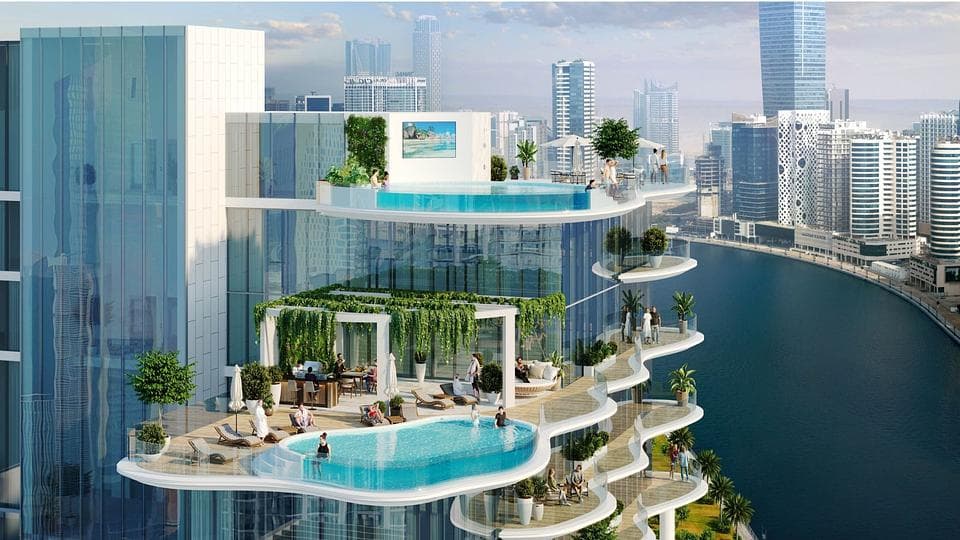 Dubai'deki en yüksek binadan uzakta olmasına rağmen, bu mülk kırk bir katlı etkileyici bir yüksekliğe sahiptir. Tasarım, her seviyede su içerdiğinden, proje açıkça Marina konumundan ilham almıştır. Sonsuzluk havuzundan ağaçlarla çevrili vaha benzeri havuzlara kadar, Dubai'nin kavurucu sıcaklığında sakinlerin serinleyebileceği sayısız yer var. Önü camlı balkonlar şehrin muhteşem manzarasını sunar ve tasarımlarının kıvrımları denizin dalgalarını yansıtır. Tek yatak odalı dairede bir banyo ve bir balkon bulunmaktadır. İki yatak odalı, iki banyo ve iki balkon vardır. Ferah iç mekanlar, görkemli bir şekilde lüks dekora eşittir.