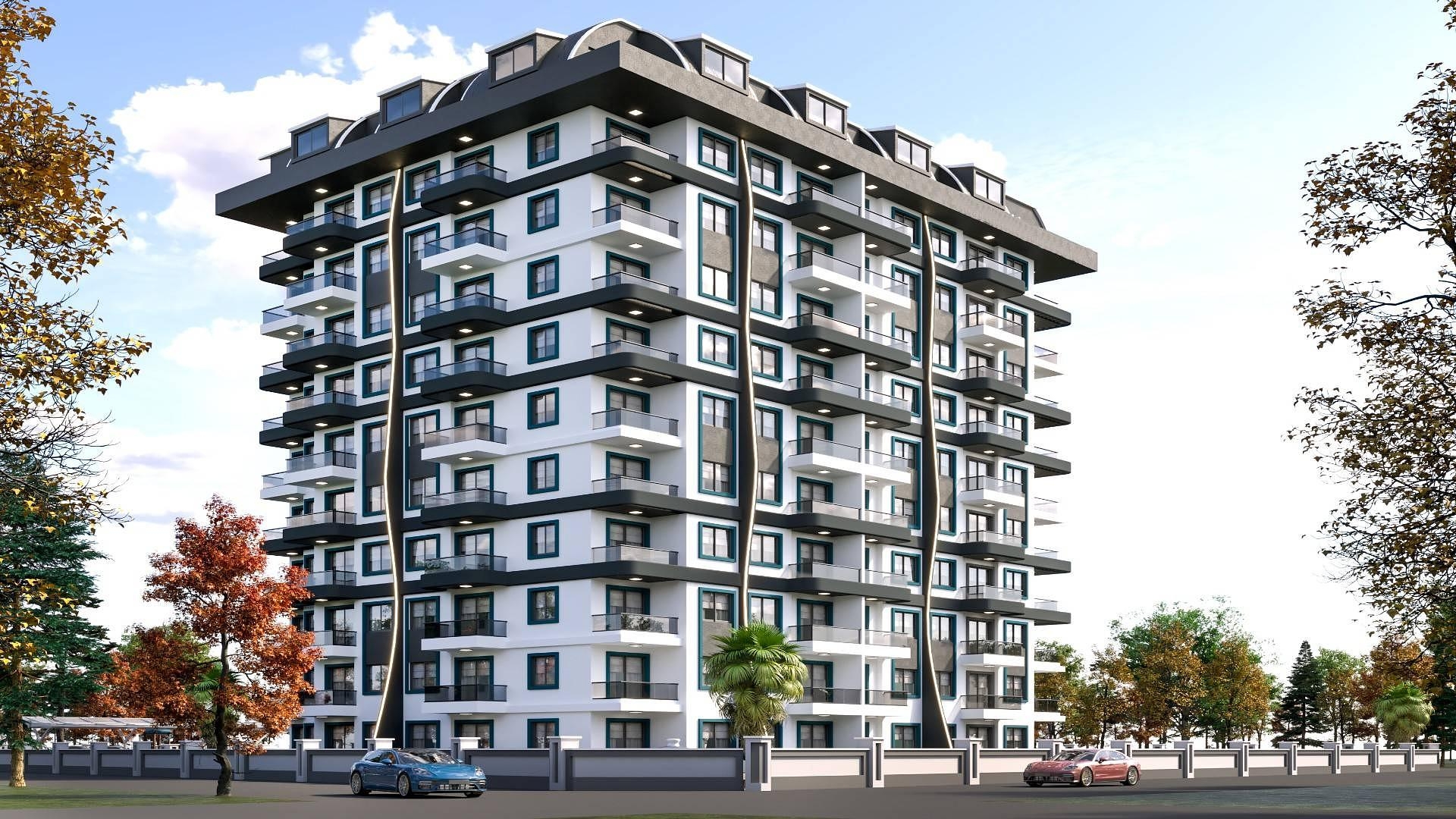 Bu mülk sakinlerine deniz, doğa ve şehir gibi her türlü manzarayı en iyi şekilde sunan ideal bir konuma sahiptir. On katlı bina, bol güneşlenme havuzu, bol otopark, oyun ve spor tesisleri içeren iyi tasarlanmış bir arazide yer almaktadır. Modern ve ferah bir yaşam sağlayan iki büyüklükteki daireler özellikle bireyler veya küçük aileleri olan çiftler için idealdir. Tek yatak odalı dairede bir banyo ve balkon bulunmaktadır. İki yatak odalı, tasarım olarak dubleks olup, iki banyo ve iki balkona sahiptir.