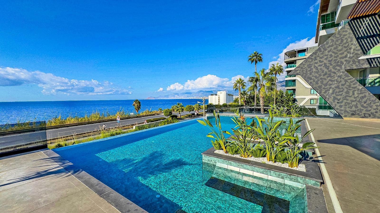 Більярд Безпека Сполучена ванна кімната Сигналізація Кабельне телебачення-супутник Камера ліфт басейн Критий басейн Зовнішня Парковка спортзал Готово в Аланії Громадянство Кімната відпочинку Бар біля басейну Джакузі Турецька лазня парова кімната пергола безкінечний басейн Соляна кімната Масажна кімната Лобі Кафе Перша лінія моря