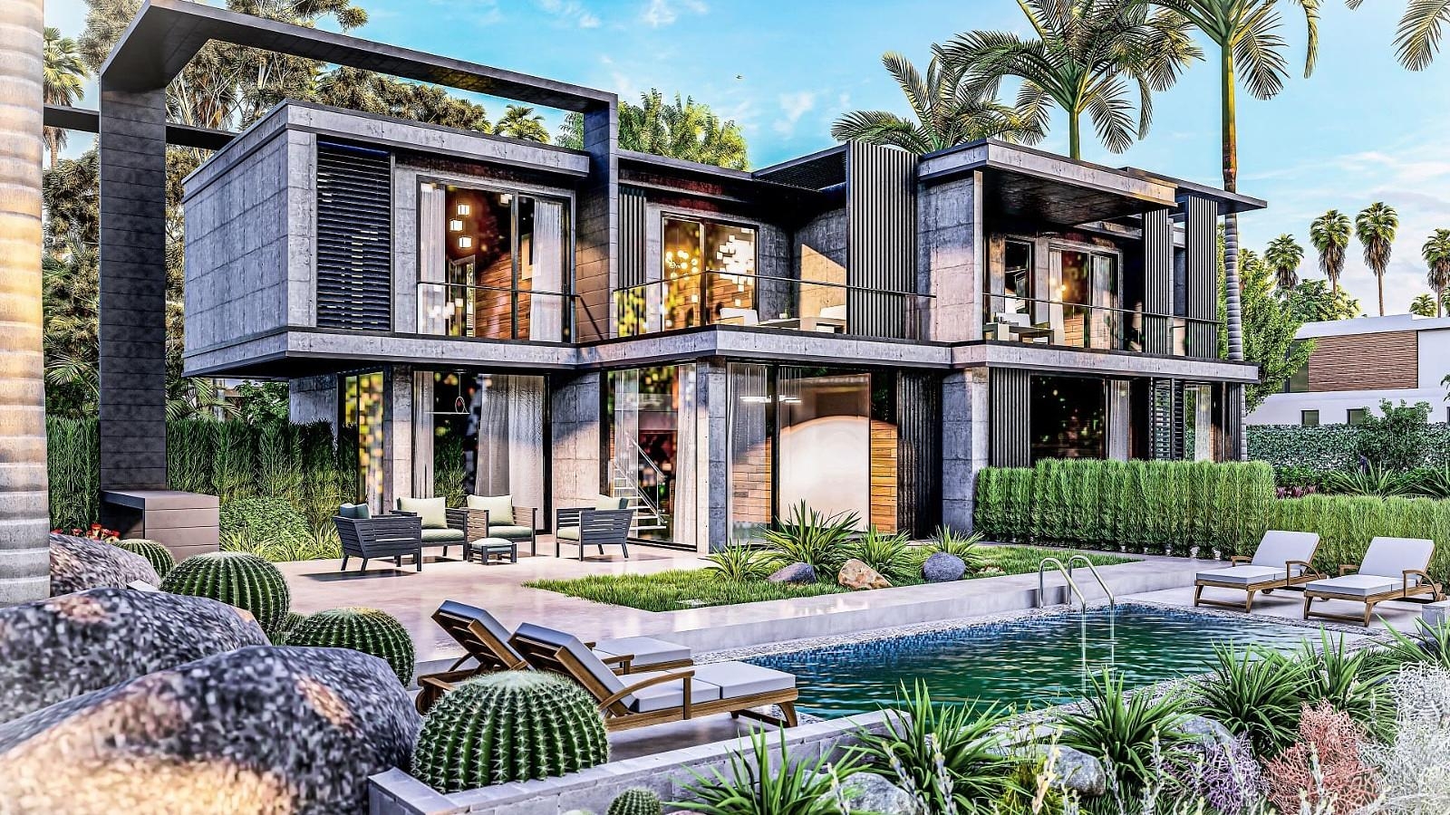 Ці вражаючі вілли є архітектурно дуже цікавими – скляні і металеві куби, з'єднані металевими огорожами, стоять один на одному. Поєднання матеріалів надає цим престижним віллам справжню сучасну атмосферу. Вони розташовані в ландшафтних садах, які доповнюють зовнішні фасади.